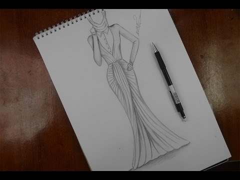 طريقة تصميم فستان مع الخطوات تعليم الرسم بالرصاص