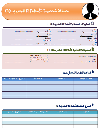 نماذج بطاقة المعلومات خاصة بالأستاذ بحلة جميلة ومهنية
